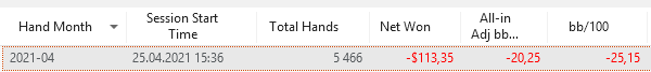 Месяц начался неудачно, проиграл ок.50$, после чего было принято волевое решение что-то менять в своей игре, ибо 3,5бб/100 за 127к рук на нл10 при общем винрейте 7бб/100 (450к рук) - это прям печально. На нл10 я словил больше всего даунстриков, и это просто проклятый для меня лимит. И если ничего не предпринимать, то дальше расти я просто не смогу в силу недостаточного дохода. В общем итоге после перерыва от покера я начал работать над своей игрой, и за этот месяц сделал больше в этом в плане, чем чуть ли не за весь прошлый год. В первую очередь я начал нормально селектить и размечать оппов. Раньше я видел чела с неполным стеком, открывающегося лимпом, помечал его предварительным фишом и забивал на это. В итоге, оказывается, что составы, в которых я играл, часто были плохими, а випачи оставались без моего внимания. К тому же я много играл днём, когда фишей мало, теперь доля дневных сессий снижается. Взял тренировку, внёс изменения в свой префлоп, понемногу помечаю интересные раздачи, настроил старзкепшн, скачал Х2Н и ФЗ, поработал в них. В планах переходить на Х2Н, настроить ХАД, и еще другие мелочи. Стараюсь наигрывать в неделю по 10к рук. Помимо этого стараюсь питаться сбалансировано, чтобы было больше сил на игру и лучше себя чувствовать, при этом не перетруждаясь. В первое время болела голова от переизбытка информации во время игры и вне её, сейчас вроде всё нормально, хотя всё же не хватает концентрации и внимания. В идеале обратиться к врачу с этой проблемой. Вообще разбирать игру, изучать какой-то новый и нелёгкий материал для меня - это тяжело, вводит в ступор, какую-то фрустрацию и беспокойство. И привычку нужную я не сформировал, эта проблема преследует меня ещё со школы и универа. Привык, что и так всё знаю, что легко - прочту и изи выучу. А что нелегко - забью. В итоге наступает точка невозврата, когда твоей компетенции становится для тебя уже недостаточно, а развиваться ты не умеешь.