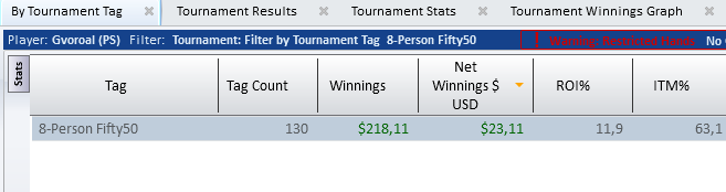 У меня тоже вчера удачно зашла первая сессия на 3,5$: 29 турниров, 90% ИТМ. Понятно, что на такой дистанции и не такое можно увидеть, но даже на нетурбо я такого не припомню, хотя там ИТМ явно повыше чем на турбинках. Надо бы себе блог завести, может появится больше дисциплины.