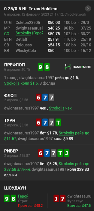 Я безумно рад, что этот стрик наконец то закончился. Как будто бы новая жизнь началась. 20 баинов заливать на нл25 это трындец как для меня не обычно. Особенно после того как я регулярно в покер не играл несколько лет. Какой то двойной удар пришлось выдержать.