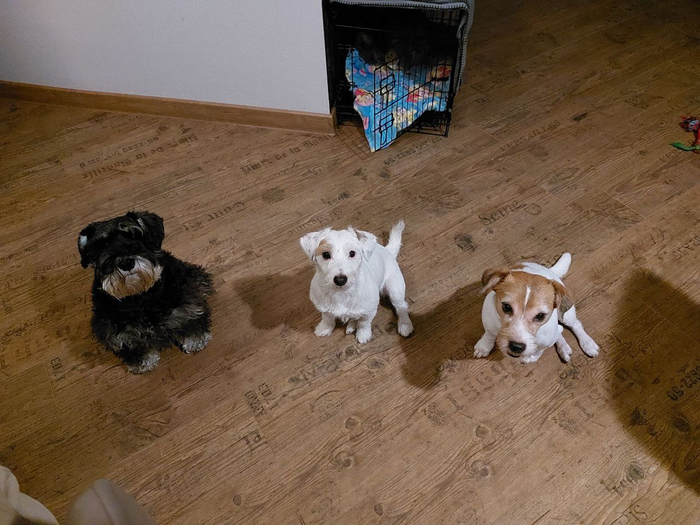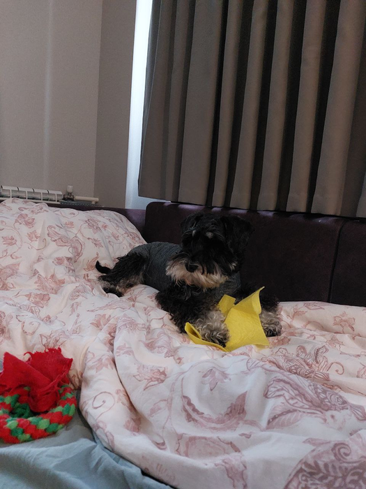 Ну, разбрасываю носки, куда ж без этого . Это Сара. 4 года, цверг-шнауцер средней упитанности, как пишут в ветеринарках. Любимая игрушка - тряпка.