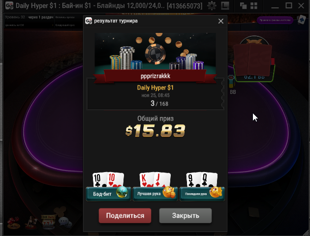 Всем привет! Не было сил вчера, точнее сегодня утром выкладывать результаты, поэтому делаю это сегодня) День 92. Сессия проходила в 2 этапа. Утренняя стандартная и вечерняя. Решил так потому, что увидел на покердоме акцию черная пятница где байины на топовые турики были уменьшены в 10 раз) Я решил не терять эту возможность и как оказалось не зря)