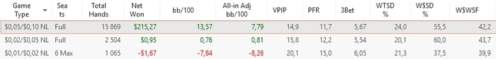 Что касается количества играемых рук, то при отсутствии работы 30-40к рук это мало. Я тоже скоро ухожу с работы и собираюсь играть минимум по 200 часов, что даст примерно 60к рук в месяц. Такой подход может обеспечить быстрый рост по лимитам.