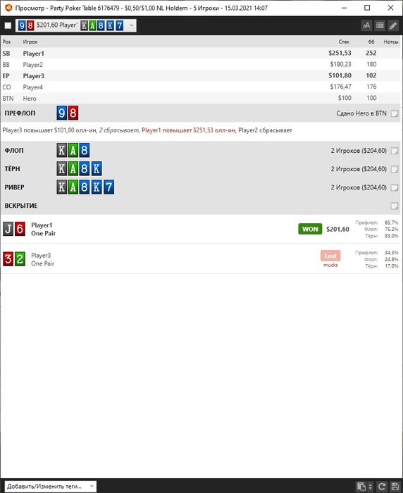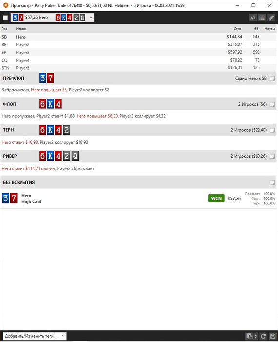 P.s. То, что бонус за подобные хот раздачи никак не фиксируется в хм3 - мне, как статодрочеру, очень не нравится. Не люблю, когда всё надо считать вручную непонятно как, нажимаю колл по одним шансам банка, а в хм3 будут другие, а как раздачи разбирать? Я должен запоминать где какая награда была или что? От мысли свалить прямо сейчас в ггпокерок отказался только из-за того, что вспомнил, что там вообще нельзя раздачи в трекер выгружать, ору.