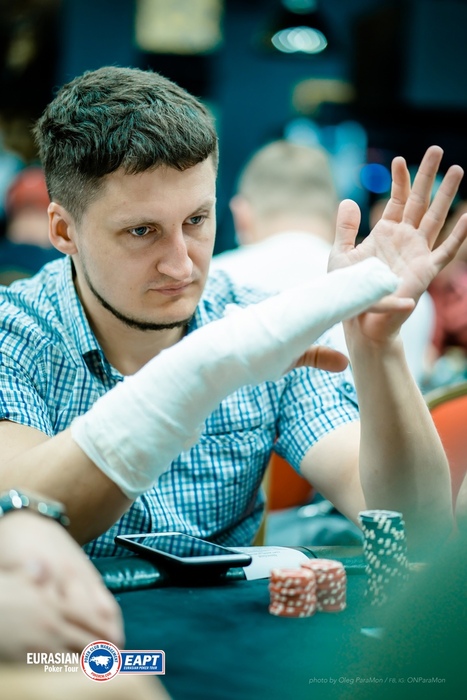 Ибрагим Магомедтагиров растерял весь стек. На пике было больше 200К. В итоге, большая часть осела у Сергея Иванова, потом была раздача, где на доске он поставил 2/3 стека и выбросил на олл-ин Эмиля Укалаева, а добил его Денис Косенко.