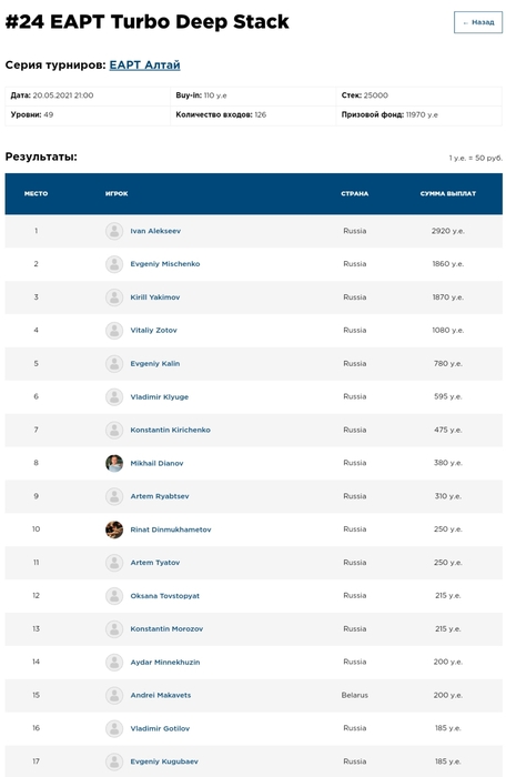 В параллельно идущем Турбо Дипстеке по 110 у.е закрылась регистрация. Периодически в турнир образовывалась очередь, но, в итоге, всем хватило места. В игре 63/126. За первое место - 3075 у.е, всего 17 человек в ИТМ.