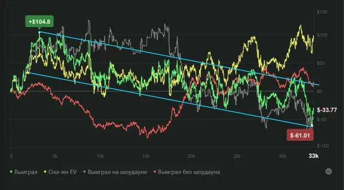График унылый, был момент когда играл в плюс, причём качели в этот период - C-гейм, по графику видно когда жёлтая линия падает вместе с красной.
