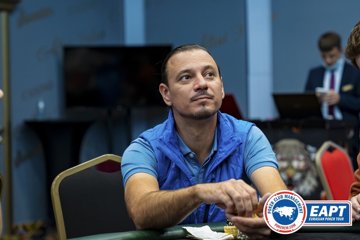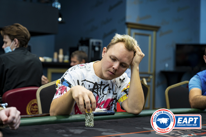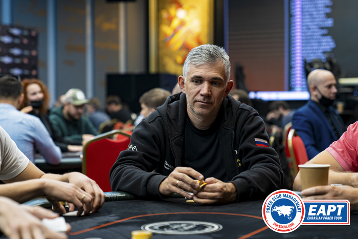 Дмитрий Котляров становится баббл-боем турнира Altai Poker Cup, 17 оставшихся игроков гарантировали себе по 22 тысячи рублей.