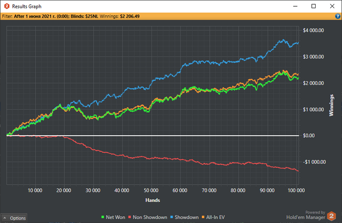 Закрыл 100к рук в 9.31EvBB\100. Буду считать, что для NL25 я годен. Есть даже версия, что не помру с голода без работы на заводе.