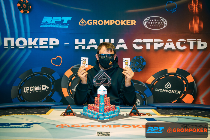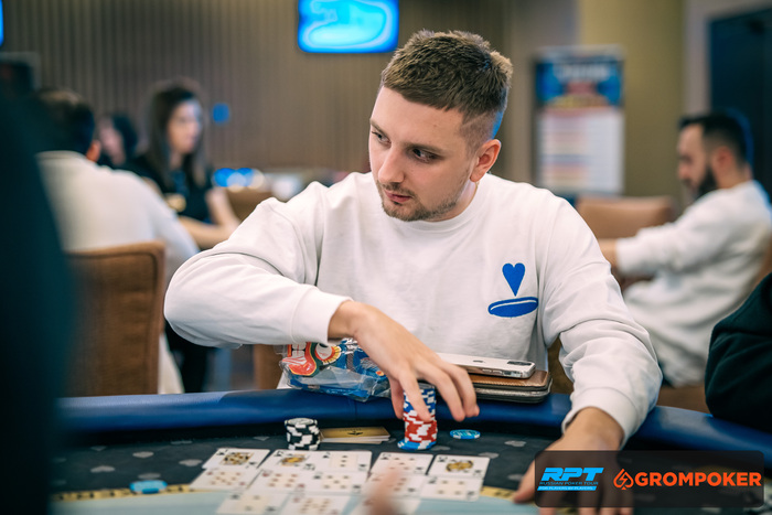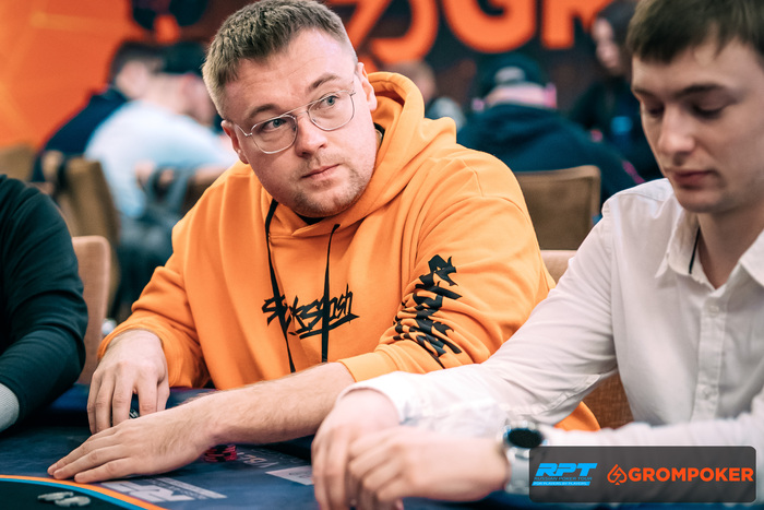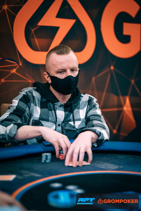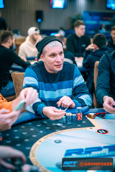По флопу все получили по топ-паре, только по терну и риверу Скрипникову нарисовали фулл-хаус, он утроился, а побочку и нокаут Павловского забрал Сергеев, шашек у которого было немногим больше.