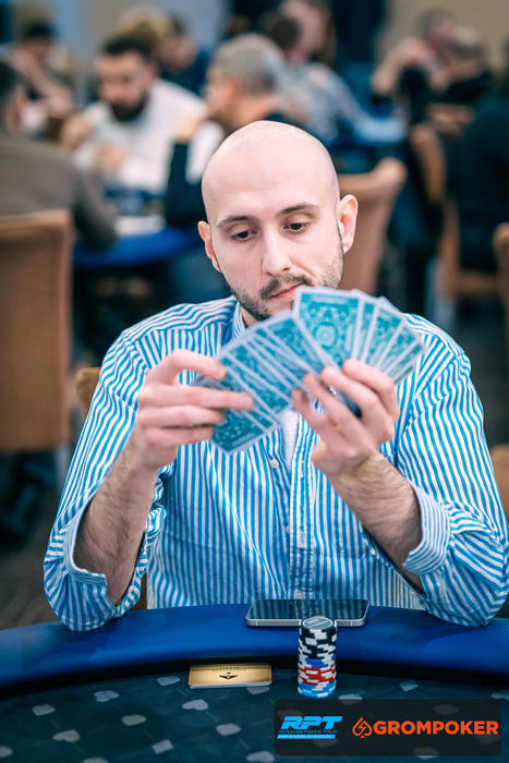 Grompoker Progressive Cup Day 1A. Уровень 14, блайнды 1,000/2,500/2,500, 19/80.