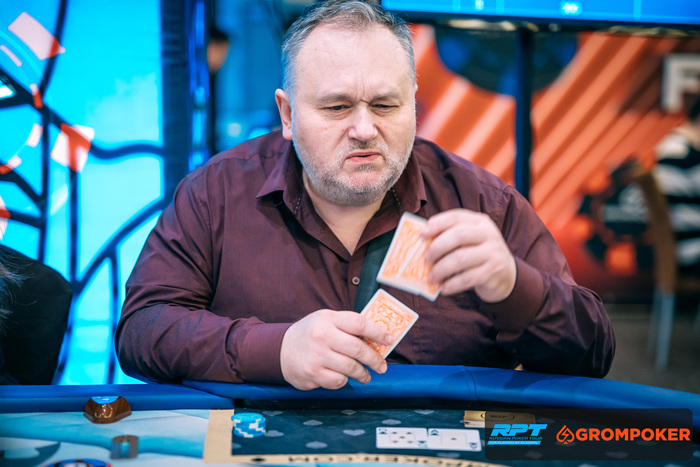 По 50,000 префлоп с блайнда на блайнд отправился за удвоением Сергей Белоус против Вадима Витковского, в итоге монетка по-классике.