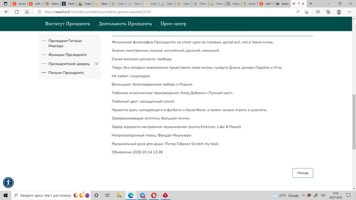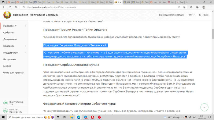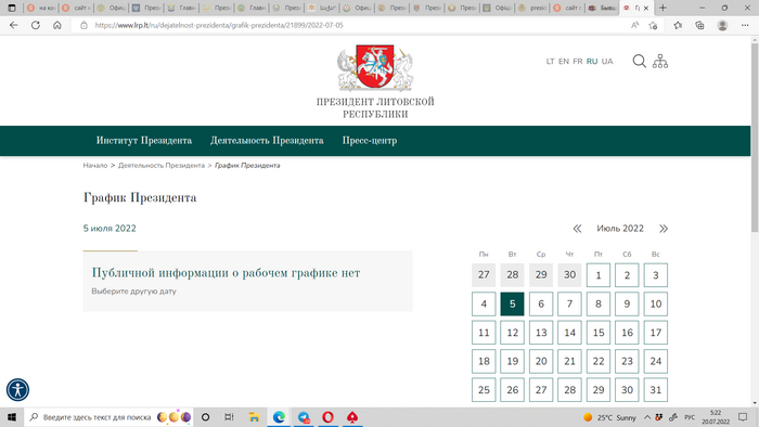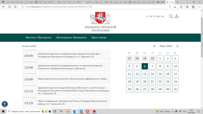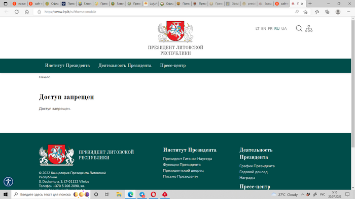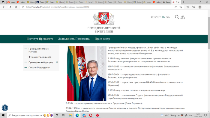 Оригинальное приветствие на сайте президента Литвы. Захожу я с черногорского айпи, поэтому это не персональный выпад в сторону россиян. Сразу бросается в глаза самое большое количество языков из всех республик - 5(помимо дефолтного русского, инглиша и собственно литовского, украинский и французский)