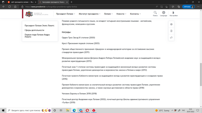 Вместо опросника Пруста в конце биографии список медалей) Латвийский президент потщеславнее литовского.