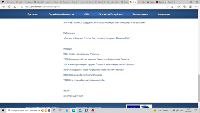Любопытно что биография написана с конца в начало. По тщеславию эстонский президент не уступает латвийскому)