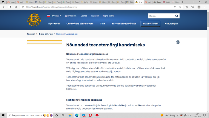 Раздел про знаки отличия не переведен на русский. Как и про канцелярию. Недоработка.