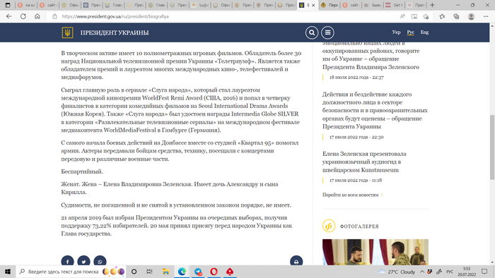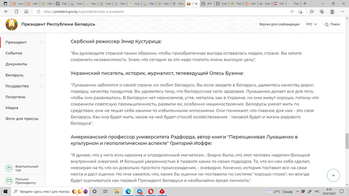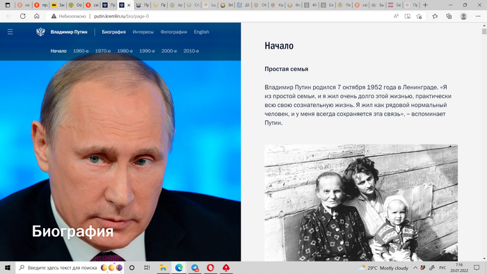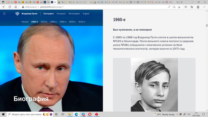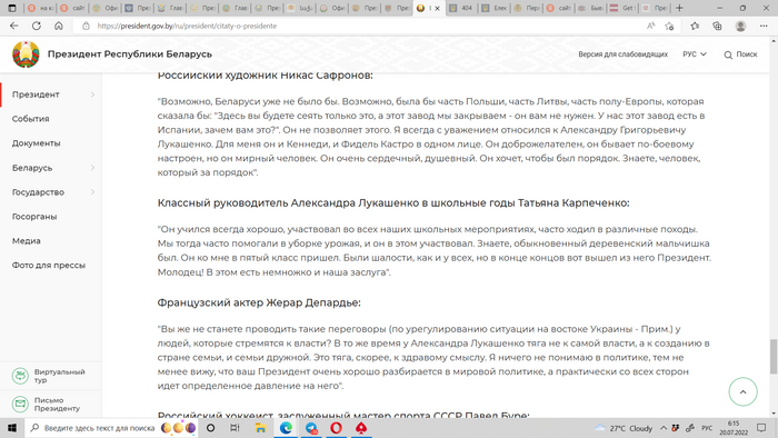 Ссылка на биографию скромно висит в самом низу сайта. И внезапно посередине биографии где шло простое перечисление фактов в документальном стиле начинается поток пропаганды) Ну тут хотя бы позаботились чтобы читателю не пришлось отделять котлет от мух)