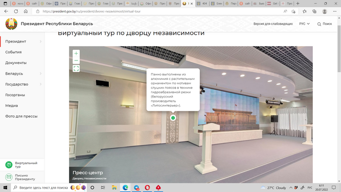 Дальше рассказывается про президентский дворец и есть ссыль для записи на еженедельную экскурсию.