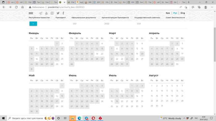 Есть календарь где можно посмотреть инфу за любой день. Из минусов никак не выделены цветом дни в которые президент не принимал участия в публичных мероприятиях(по ощущениям, 30-40%)