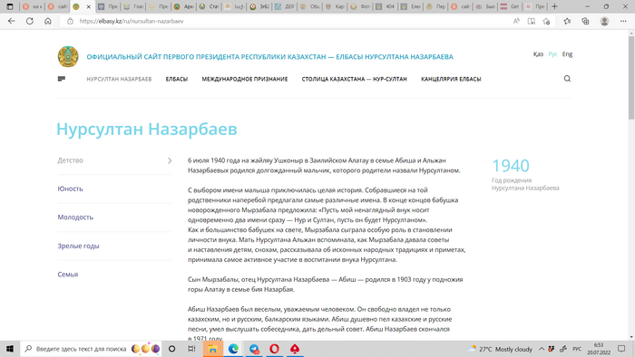 Бонусом беглый обзор сайта предыдущего президента Назарбаева. Так сказать, почувствовать контраст.
