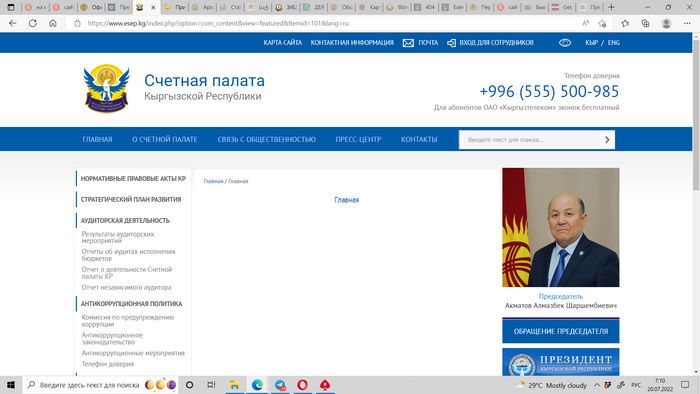 Посередине главной сайта кыргызской республики увлекательный белый экран