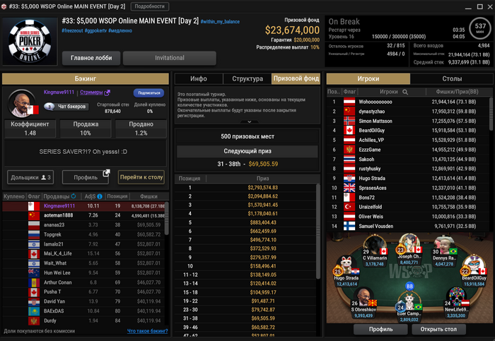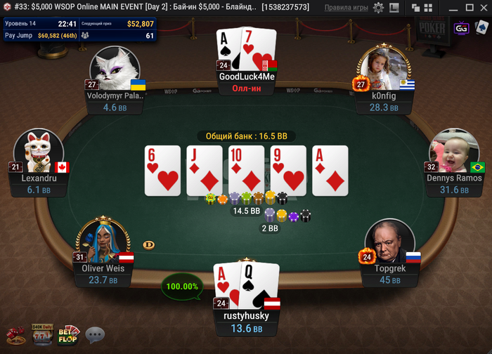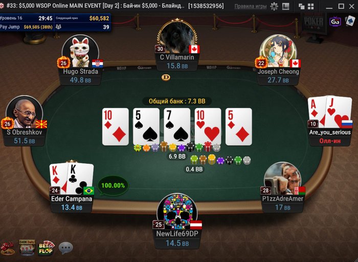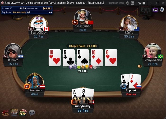 Алексей GoodLuck4Me занял 60-е место ($52,807). После него вылетел Хун Вэй Ли.