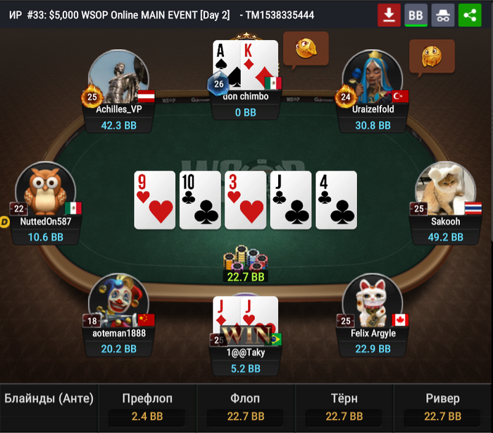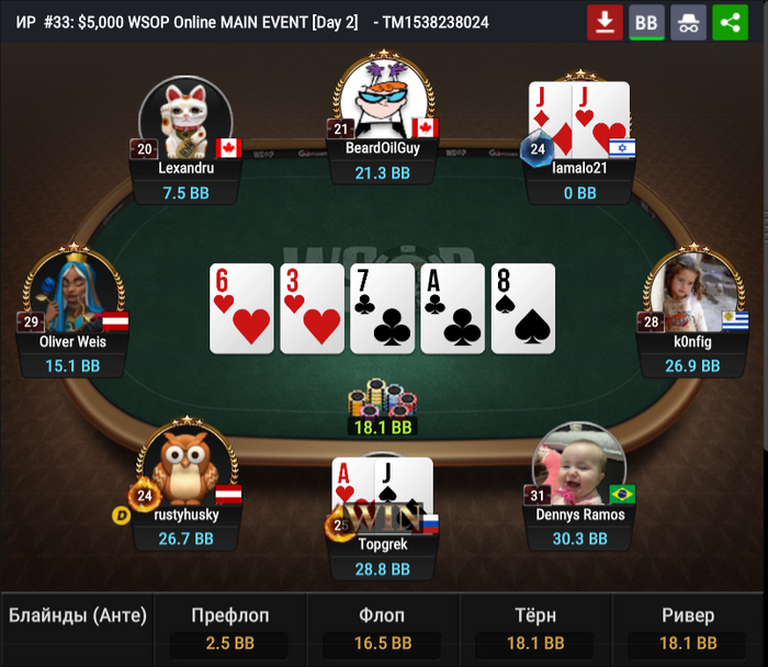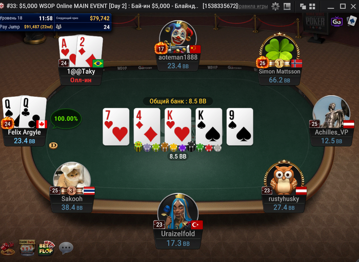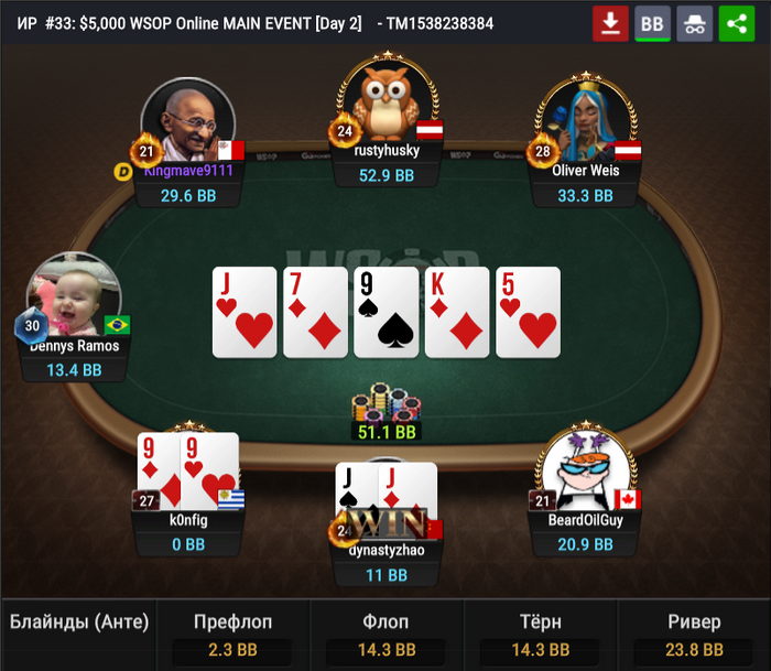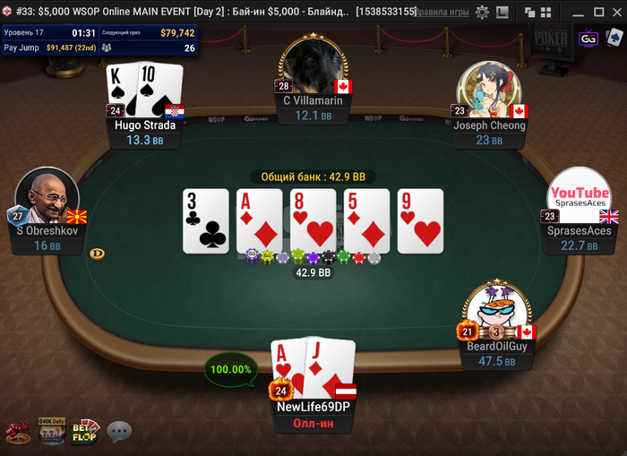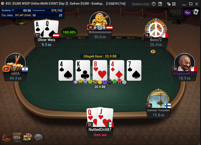 NuttedOn587 запушил 9bb с первой. Оливер Вайс сыграл репуш с HJ.