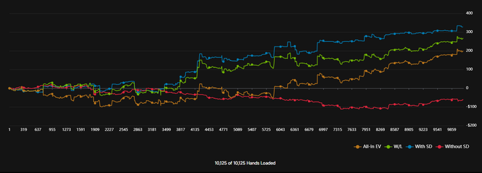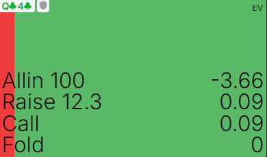 tamandarin, Зеленое/красное это частота колла/рейза на префлопе, видим что ЕВ обоих действий одинаковое 0,09бб/100, но частота разная. Я со многих поз полярно 3бечу, но отыгрывать нужно уметь, просто 3бетить ради 3бета не стоит.
