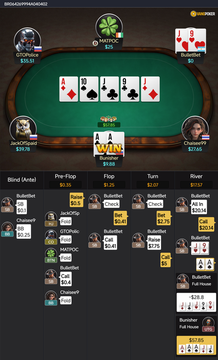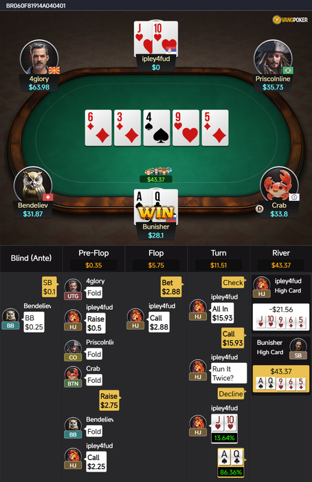 Решил с этой комбой сыграть бет-овербет-оллин. Стритов там нет, QJ на 3/4 не колят флоп, мне важно было блочить только допера по риверу, бубовая десятка не самый лучший блокер, так как блочит часть фолдов, но десятку в руке иметь очень важно, потому что кроме доперов там почти нет колов по риверу, а у меня есть все стриты, сеты и старшие допера. Не залазил в солвер, но блеф, как во время катки, так и сейчас устраивает.