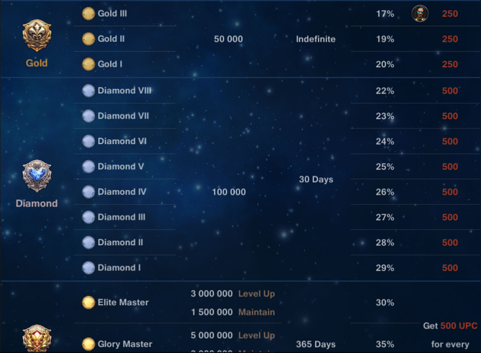 За 190 upc дают сейчас 29$ вроде за неделю, до воскресенья если апну ранг дадут еще 250 upc, за diamond уже по 500 upc:
