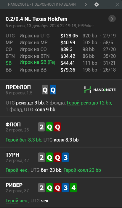 Против чек/рейза ничего не выдумываем, не тянем мифическое эквити, играем солидно, пытаемся детально определить ренж действия оппа и как мы стоим