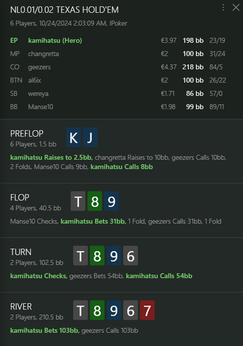 Рука не очень способна бороться на высоких досках. Плюс ее ауты часто сожраны с префлопа, т.к. тут мультивей 3бетпот и оппы не забудут разобрать бродвей по рукам, чтобы глянуть флопец.