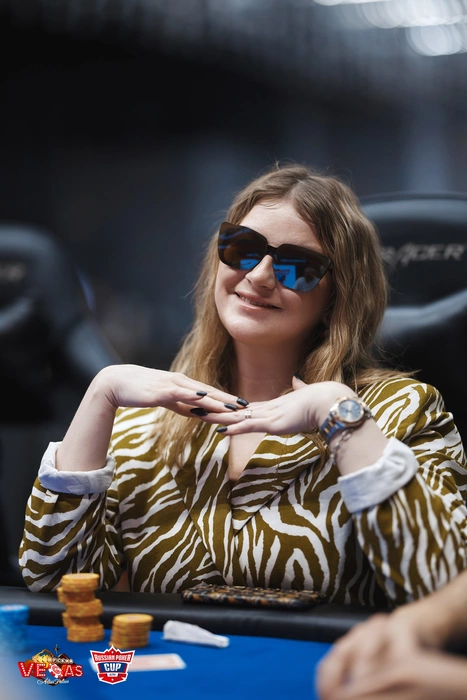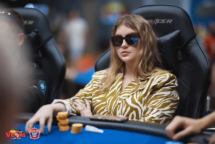 У Матвеевой оставалось всего 225,000 после этой раздачи, и она поехала с против Артема Прищепова. На флопе положили семерку, очередное удвоение на предфиналке. Средний стек уже 21bb всего.