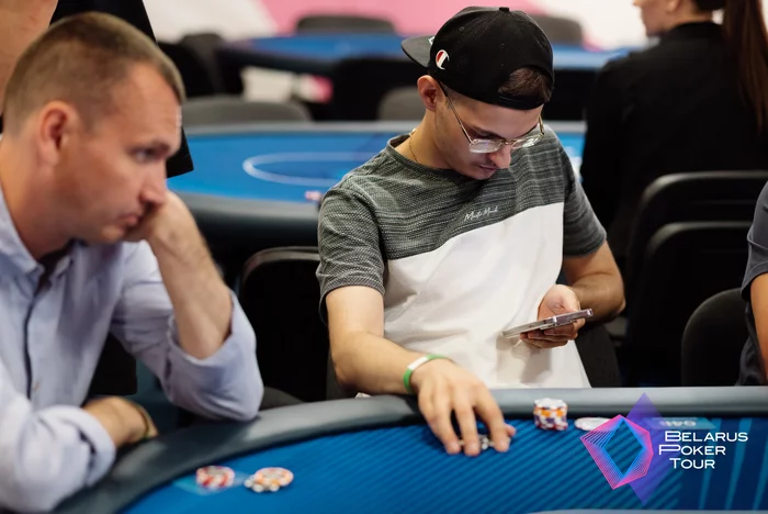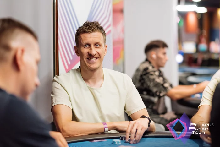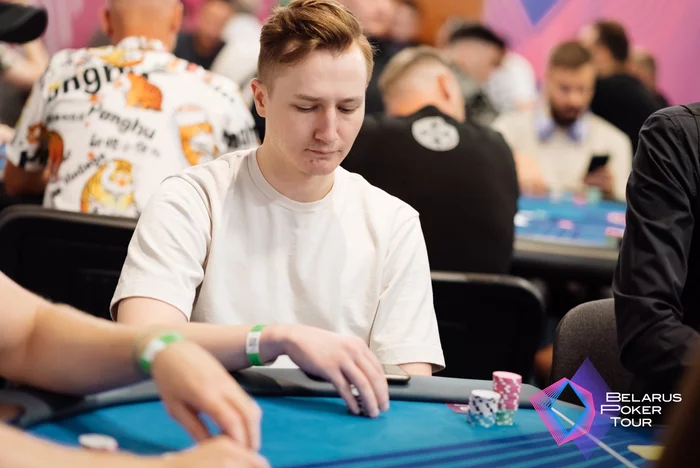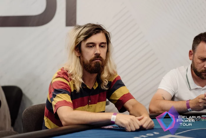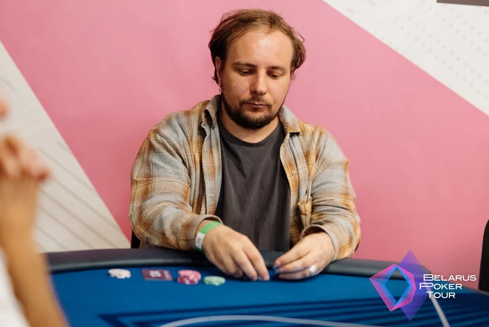 А вот Максим Абрамович после перерыва уже успел немного нажить фишек. Подколлил из средней открытие Артура Наумкина. На флопе Артур сыграл чек/рейз ствки 12к до 40к, Максим поколлил. На терне Наумкин снова чекнул и сдался на второй бет от Абрамовича.