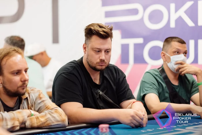 Перед перерывом неплохой банк забрал Максим Абрамович. Он подколлил на малом блайнде мин.рейз от Андрея Петрущенко (UTG), третьим заскочил Антон Котляр с ВВ.