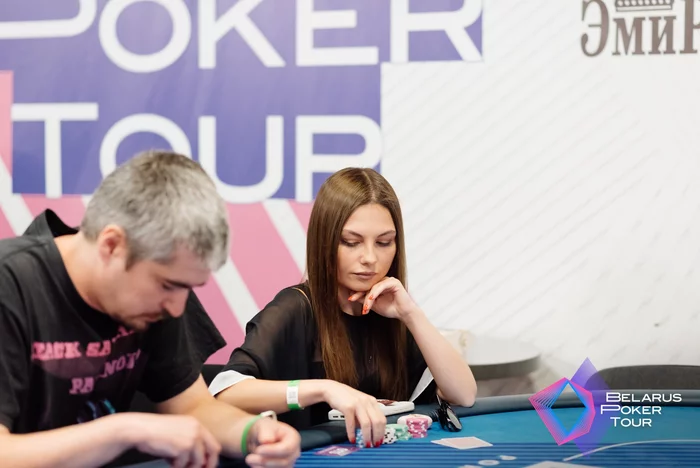 Армен Амбарцумян (СО) открылся 12к, Анастасия Ильина (BU) сыграла 3-бет 36к. Андрей Петрущенко с большого блайнда — 4-бет вхолодную, Армен сдался, а Анастасия сыграла 5-бет пуш на эффективный стек 370к.