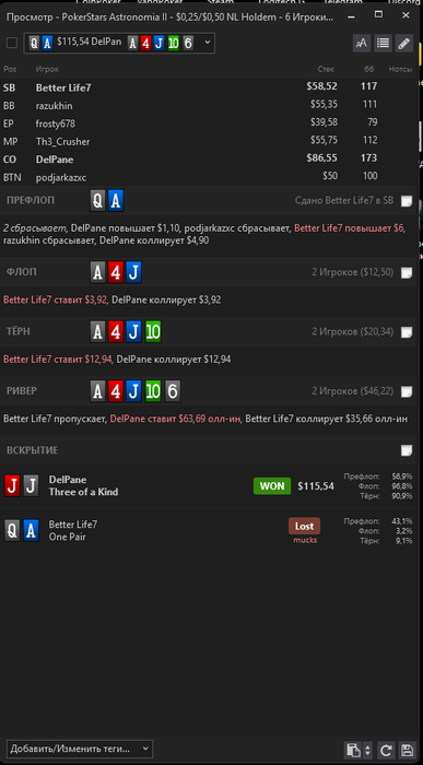 nafnaf, Да, есть такое, при первых разборах моей базы, тренер первым делом сказал мне пересмотреть кбеты терна)) ошибки все равно делаю, хотя и намного реже,вроде работал над этой проблемой. После выхода с фонда теорией вообще толком не занимаюсь, много инфы забываю уже, надо почаще флопзилу открывать.Спасибо, буду повнимательней играть!