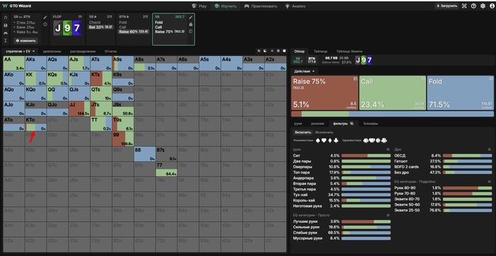 И если опп превращает в блеф с низкой частотой лоу покеты , андерпары, гатшоты , оесд. Свои натсы рейзит не всегда, тогда эта рука колится в + по ев!