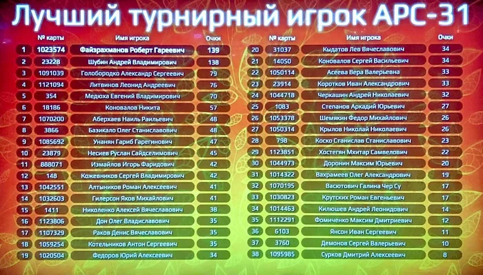Актуальные Лидерборды APC-31 с учетом всех завершенных турниров за 20 марта.