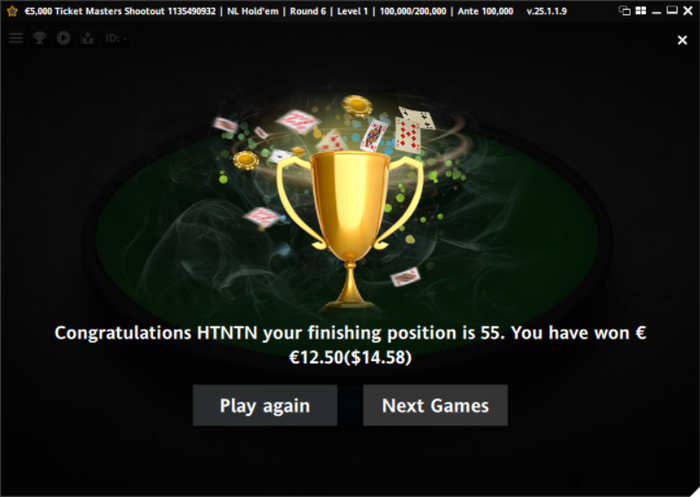 Помимо спинов зашел сегодня 2 раза в 10 евровый мистери, как то немного соскучился по мтт. Оба входа мимо, но из хорошего, с новых авто олл ин турниров, на которые каждый день мне падают билеты упал билет за 12.5