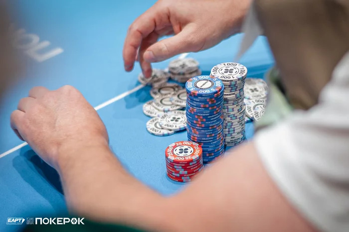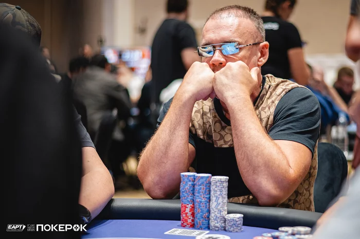 Чиплидером перешёл в финальный день - непобедимый Evgenii Ivanenko! Ему удалось перейти в финальный день главного события со стеком - 7,375,000. Невероятный результат! 🎉
