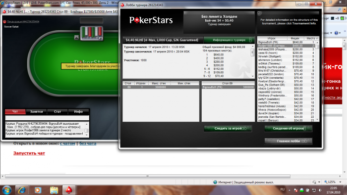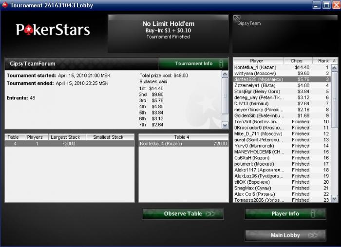 Думаю нет смысла ставить этот занос в МТТ от 20$) хотя в данный момент он мне очень приятен) ну а парень который занял 3-е, очень непрост был, позарубался с ним неплохо)