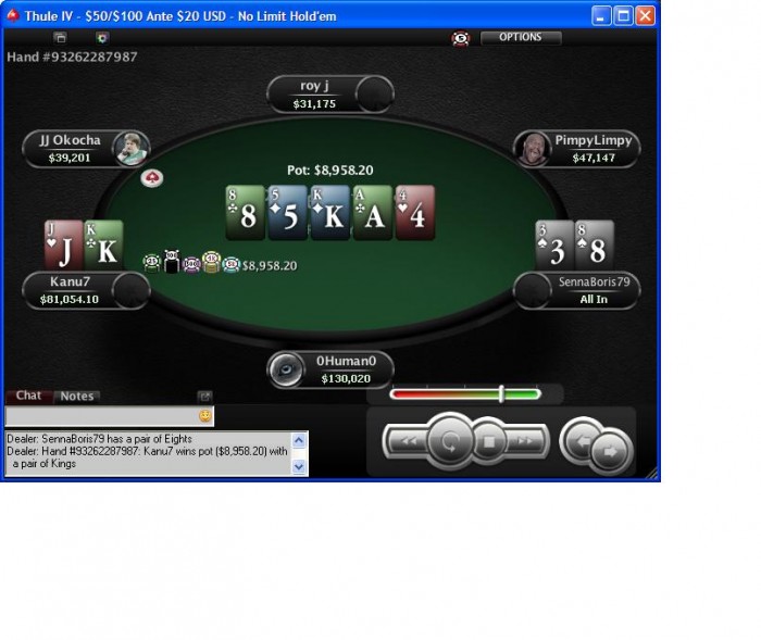Ben86 goes all-in $58,058.26 Final Pot: $176,716.52 Ben86 shows a pair of Kings