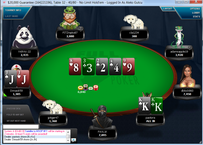 Full Tilt Poker $20,000 Guarantee No Limit Hold'em Tournament - t40/t80 Blinds - 9 players -