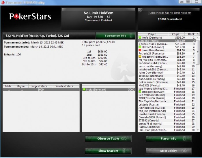Сегодня не отыграл нужное количество, т.к. ни кто не аццептит и приходилось каждую игру ждать, поэтому ушло много времени, сейчас уже устал сидеть, думаю, что лучше закончить на этом.