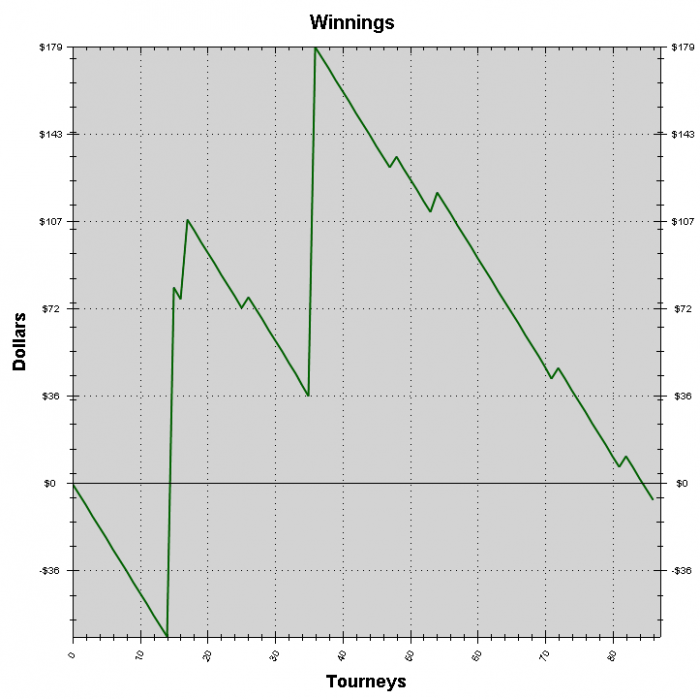 Абзац, в последнем попал в ИТМ и вылетел 16м - жестоко. На графике последние 25 турниров сегодняшние. Столько переездов и проигранных коинов я давно не видел.