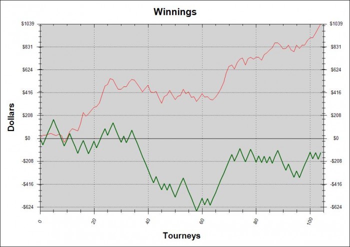 Правильно ведь говорят - никогда не сдавайся! Если есть хоть одна фишка,и место за столом,всегда есть шанс вернуться в игру.Лучше всего это конечно доказала Лика,выигравшая турнир,после того как оказалась в авто-оллине в ТОП3.Но у меня сегодня была своя история,после череды очень неудачных розыгрышей и выставлений,я начал играть фрирол (должен был вылетать с < ) с стеком 3.800 (10ББ) уже на 4-м уровне.Решив для себя,что крейсер "Варяг" так просто врагу не сдастся, во время перерыва на ужин применил тактический-боевой приём:принял в номере душ,переоделся, и с новыми силами вернулся за стол.Как результат,я не проиграл ни одного выставления (>, > и ключевая >). В результате перешёл во второй день с стеком 42.500, при среднем около 50.000, всего из 1.100 человек во второй день перешли около 600 человек. Через 9 часов начинается 2-я часть барселонской корриды.Удачи всем форумчанам!