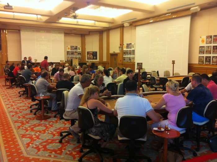 Наша дорога на Кипр началась из Антальи. 30минут в полете и мы уже в Эркане. Сразу понятно на какую сторону Кипра летим. Перед паспортным контролем возьмите и заполните бланк, куда вам поставят штамп вместо паспорта. Я забыл про это, но нам некритично, паспорта уже надо менять все равно. Кстати на обратном пути не стоит выезжать с большим запасом, мы выехали за 2 часа до рейса этого вполне хватает (45 мин такси и минут 30 занимают все процедуры в аэропорту). Дальше вас встретит трансфер (немного удивило левостороннее движение) При въезде в отель напоминание о главной цели пребывания Номер стандартный,в целом комфортный, очень хорошая система кондиционирования, летом это важно:). Большим минусом был только очень плохой wi-fi в номере и в целом во всем отеле, кроме лобби и покерного клуба, там только во время мейна впт очень плохо работал Вид из номера При выходе из номера небольшой мостик между зданиями, из которого не менее симпатичный вид открывался, заряжало позитивом перед турнирами Питание в отеле очень приличное, для 10-12 дней очень хорошо, но после дня 14 конечно начнаются большие проблемы с выбором блюд, как ни крути, а кухня специфическая и сильно не хватает привычных блюд. Кстати за 32 дня all-incluciva привез всего 1 кг лишний Подготовка к обеду Пляж Есть несколько мест для купания. море надо сказать очень переменчивое, некоторые дни очень чистое и спокойное, но в некоторые не было совсем желания в него заходить. Бассейны Вообще несмотря на то что территория пляжа и особенно бассейнов небольшая, там всегда есть место. Сразу видно, что основная часть людей сюда не купаться приезжает:) В целом конечно развлечений немного. Пару раз ездили в город, но там из интресного увидел только магазинчик который основательно подготовился к встрече покупателей В отеле есть площадка для тенниса и баскетбола, там же в футбол можно поиграть, к сожалению в теннис спаринг себе так и не нашел, хотя человек 5 собирались, но так и не решились) Забавно проходят ежедневные фриролы. На старте человек 50-70, по сигналу они бросаются к столу, где лежат карточки с номером стола и места и счастливчики идут играть, опоздавшие ждут когда место осободиться или дадут дополнительные:) на первой серии как видно все было попроще. Фрирольщики. В отеле очень хороший выбор спиртных напитков, в покерном клубе и казино организовано почти круглосуточное питание с часто меняющимся выбором блюд. Про турниры напишу позже. Жалко, что не удалось привезти его домой или хотя бы поиграть за финалочкой, но все равно поездка вышла очень позитивной:)
