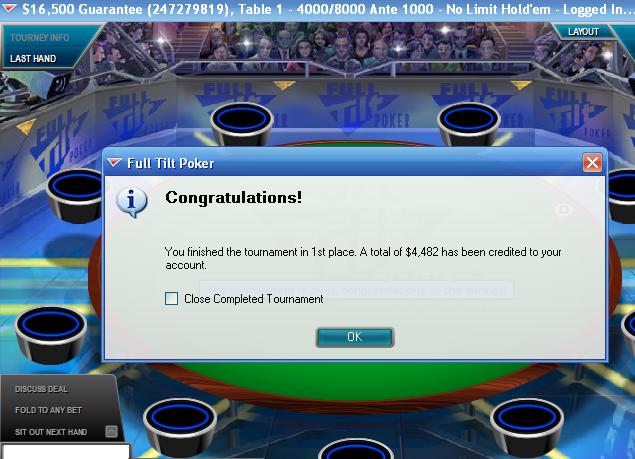 Full Tilt Poker The Multi-Fifty No Limit Hold'em Tournament - t4000/t8000 Blinds + t1000 - 6 players