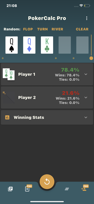 Ох это ужасное чувствую когда сбрасываешь против двух рук. Хз есть ли тут блефы конечно.