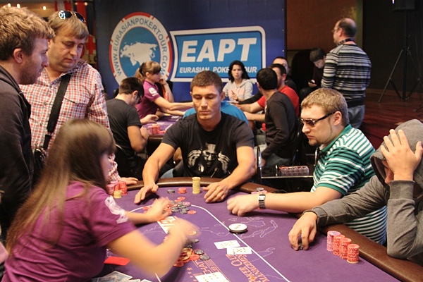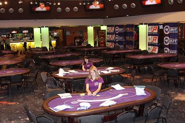 Всем привет. И снова говорит и изредка показывает "Крещатик". Сегодня слава Богу заключительный день серии, но несмотря на накопившуюся усталость... ударим пробегом по бездорожью и разгильдяйству! До начала доигровки EAPT Main Event остается чуть меньше 10 минут, но игроков пока не видать.